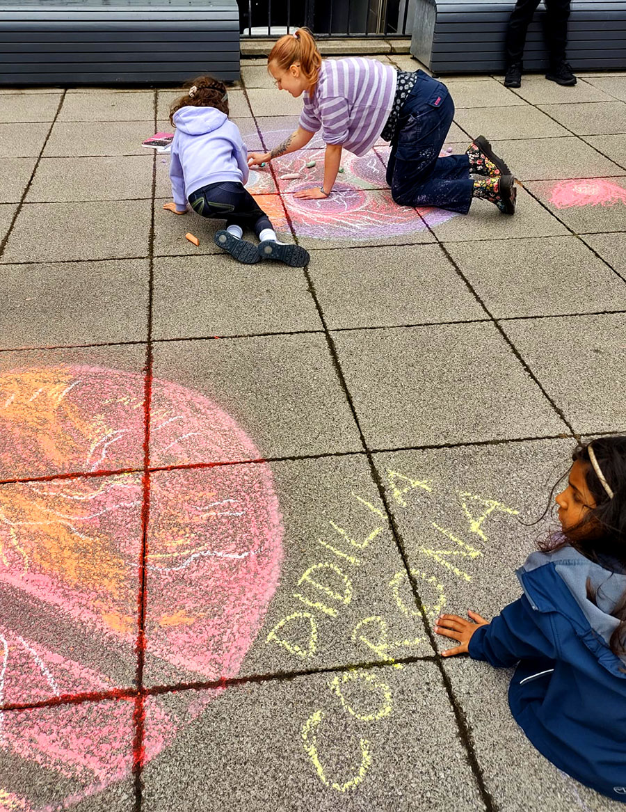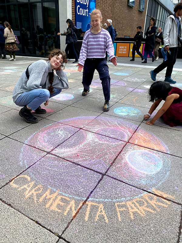 Venus Chalk Drawing is a participatory performance led by Lily Hibberd in collaboration with artists Imogen Harrison and Tereza Janáková, commissioned for the Space Zone program of The Great Exhibition Road Festival 2024 in London, UK.