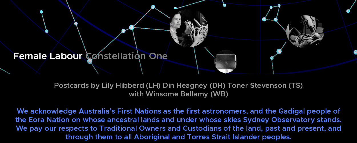 From video 'Female Computers' by LH & TS, 2020, based on WB interview by TS, 2011. Image: Photograph of Mary Allen and Ethel Wilcocks measuring astrographic plates, 1941. Collection Museum of Applied Arts and Sciences.