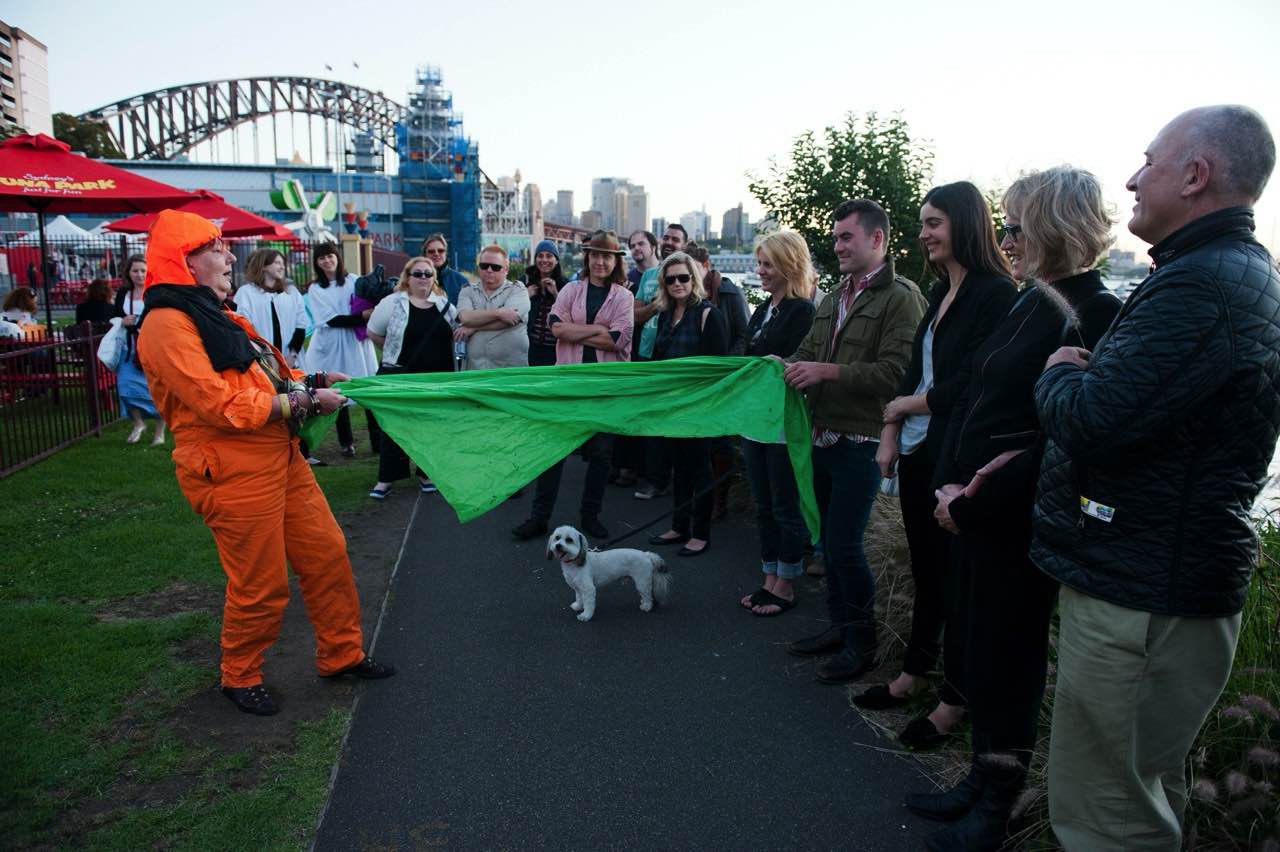 On two balmy Saturday evenings on 28 November and 3 December 2011, Lily Hibberd and Wart led a party of 20 or so participants on a tour of twelve sites or “stations” along the foreshore of Sydney’s Luna Park and Lavender Bay, a harbourside suburb on the lower north shore of Sydney, New South Wales, Australia.
