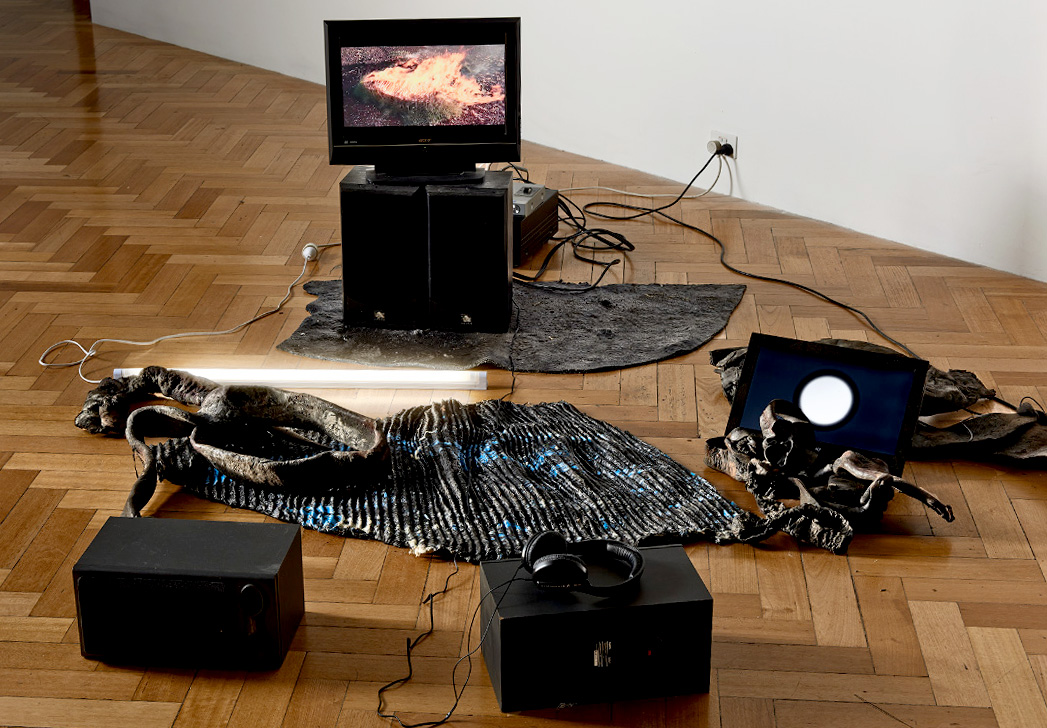 Sun Servant is a recollection of the future. Inspired from Simone Weil's essay 'Decreation' about the role of death in producing life, set in landscape of reclaimed rubber this video installation feels its way through the wasteland of our dispossession of the natural world.